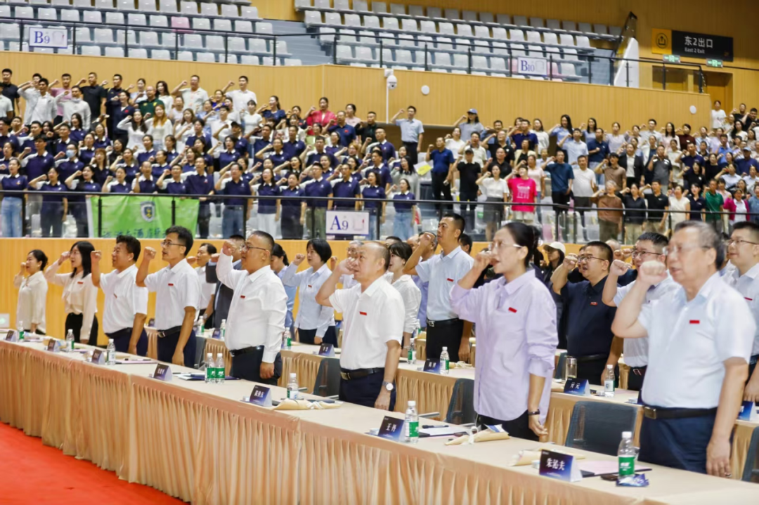 大会上,全体教职工在赖振寅教授的领誓下,庄严宣誓教师誓词——“我志愿成为一名人民教师,忠诚党的教育事业,遵守教育法律法规,履行教书育人职责……”铿锵有力的誓言回荡在书艺馆内,这誓言不仅是对教育事业的郑重承诺,更饱含着教职工们对三尺讲台的热爱与坚守。